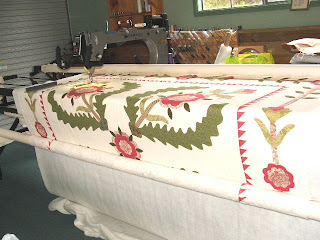 I haven't shown anything in the workroom for a while so here is a photo of Yvonne's quilt in progress. It's taken me a bit longer than I thought with a few hold ups here and there but I am working on all the SID which is the slowest part. Isn't is pretty? It's a pattern by Robyn Falloon. I also have one of these panels finished as another UFO, I only have three more left to do then the borders...one day.